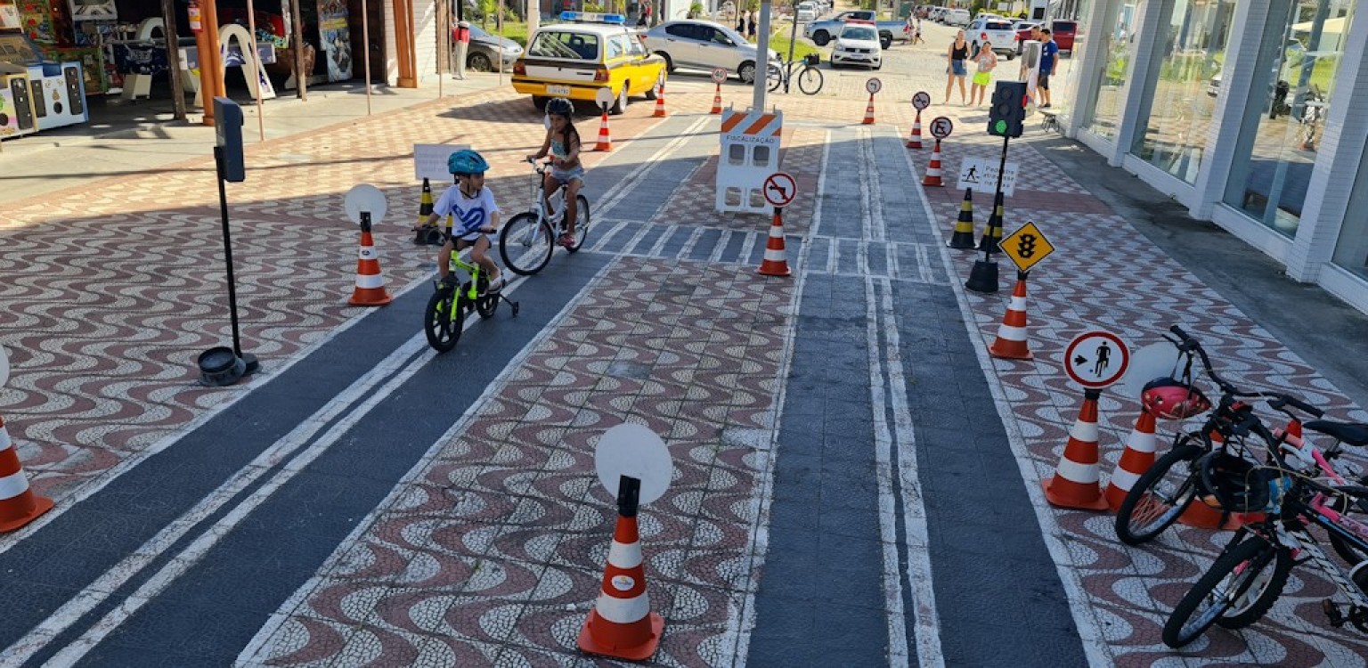 Atento ao significado das placas de sinalização, Benício fez diversas voltas no circuito, assim como a irmã, Isadora, de oito anos. Fotos: Rodrigo de Aguiar/Papareia News