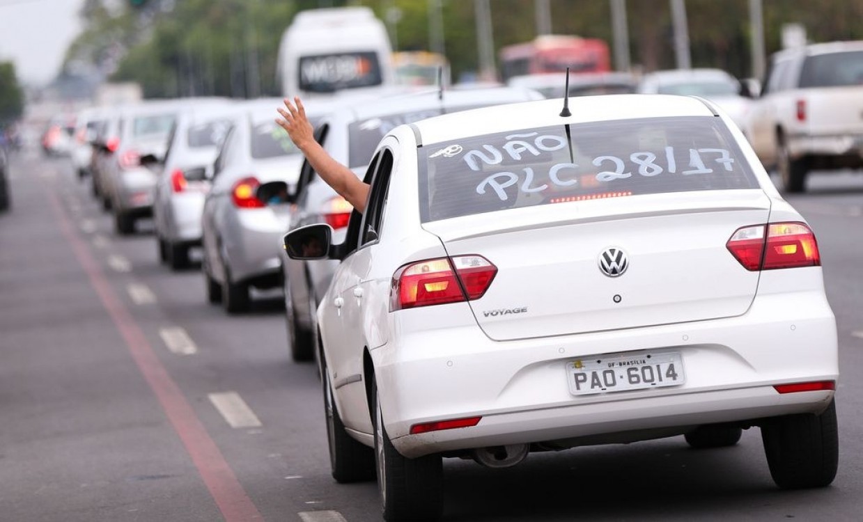 Durante a discussão do projeto, protestos na Esplanada dos Ministérios ao longo da tarde reuniram 3 mil pessoas, entre taxistas e motoristas de aplicativos. Duas confusões foram registradas pelas forças de segurança, que chegaram a reter o trânsito por alguns minutos. Em uma delas, os taxistas que se dirigiam em direção aos motoristas de aplicativos foram contidos com spray de pimenta pela Polícia Militar, que prendeu um motorista por desacato.