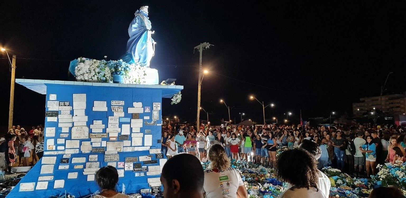 Estátua em homenagem ao orixá recebeu a visita de milhares de pessoas que levaram oferendas e acenderam velas em sinal de agradecimento por graças alcançadas. Foto: Rodrigo de Aguiar/Papareia News