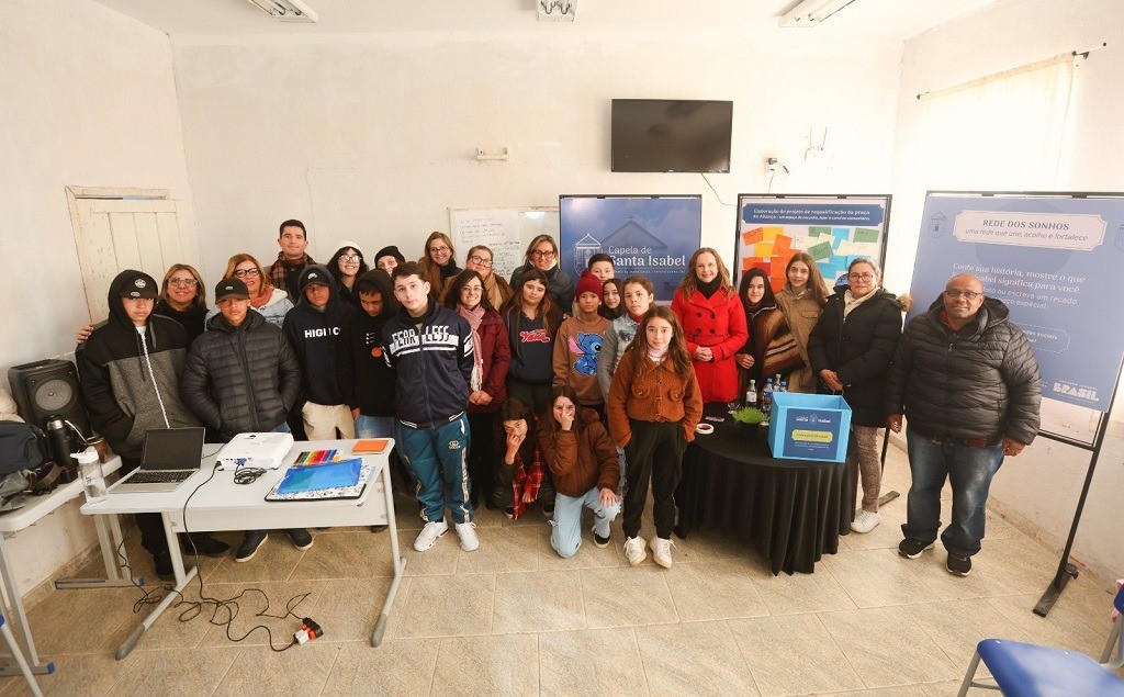 O encontro aconteceu na Escola Estadual Santa Isabel e contou com a participação de alunos do 6° ao 9° ano, professores, representantes locais, do poder público e o pároco Michel Canez. A arquiteta Simone Neutzling, responsável pelo projeto, deu as boas-vindas ao grupo e detalhou as etapas do projeto arquitetônico, da requalificação da praça aliança e destacou a importância da participação comunitária nesse processo.