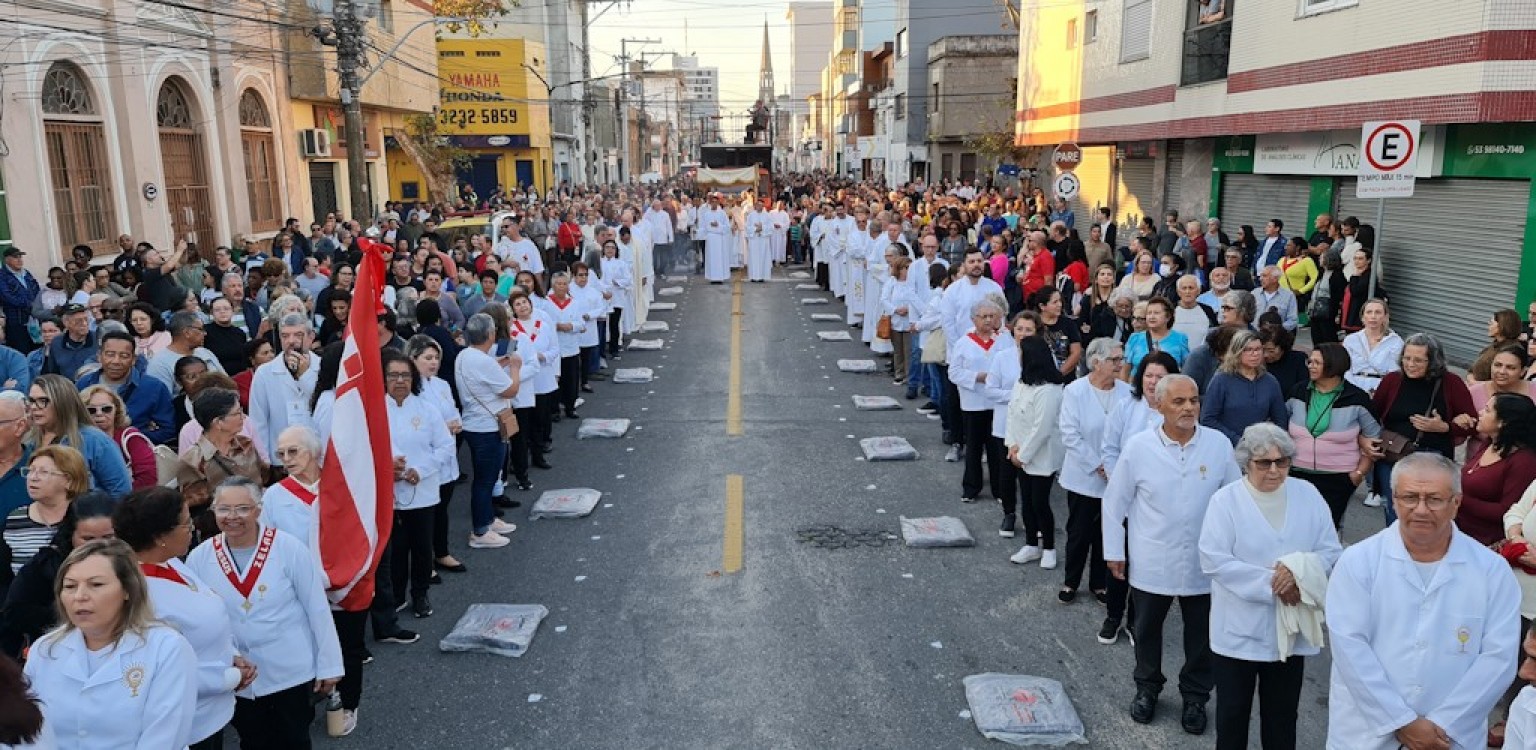 Católicos rio-grandinos foram às ruas nesta quinta-feira (8) para celebrar Corpus Christi. A data móvel, sempre comemorada 60 dias após a Páscoa, reverencia Jesus Cristo na hóstia consagrada. Outra tradição da data são os tapetes feitos pelos fiéis com o uso de serragem e outros materiais coloridos.
