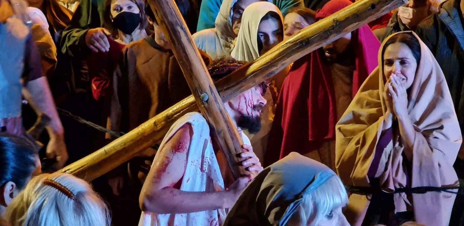 Centenas de pessoas acompanharam, na noite do feriado da Sexta-feira Santa (15), a encenação da Paixão de Cristo, no balneário Cassino. Atores e voluntários protagonizaram um espetáculo que não acontecia no município desde 2014.