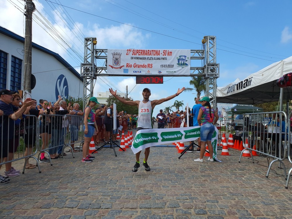 O paulista Renilto Batista dos Santos é o grande vencedor da Supermaratona Cidade do Rio Grande. Com o tempo de 03 horas, 07 minutos e 04 segundos, ele percorreu os 50 km e faturou a prova que é reconhecida nacionalmente.