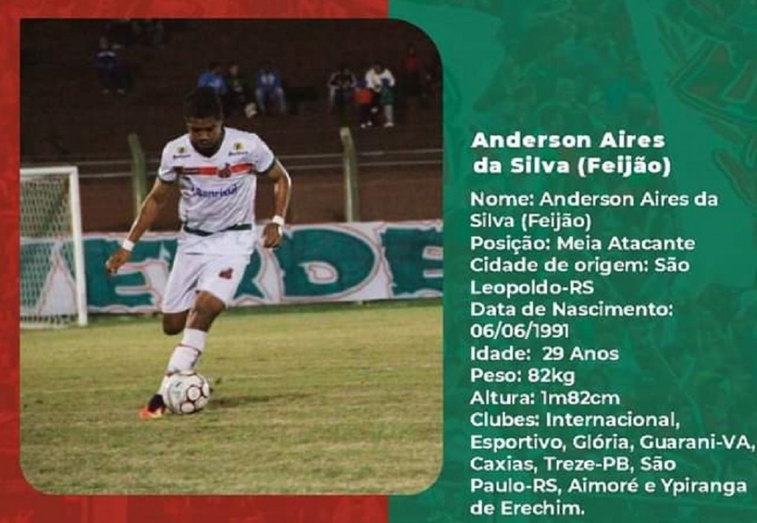 Anderson tem 29 anos e já atuou no Internacional, Esportivo, Glória, Guarani-VA, Caxias, Treze-PB, São Paulo-RS, Aimoré e Ypiranga de Erechim.