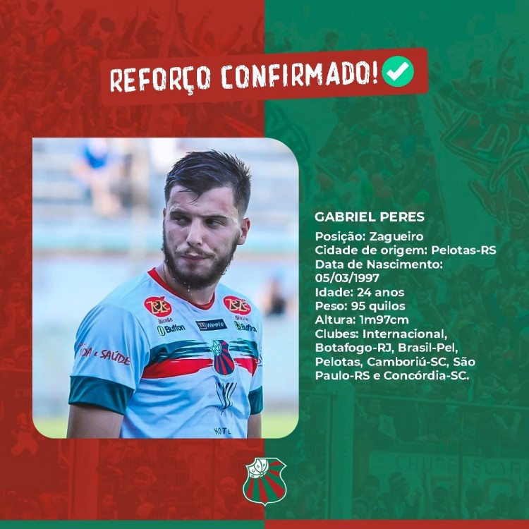 ZAGUEIRO GABRIEL PERES É ANUNCIADO NA LINHA DO PARQUE