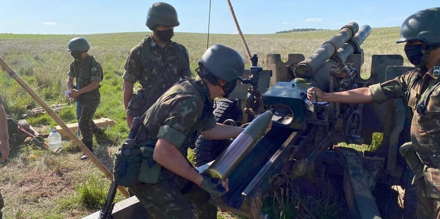 No local, estão sendo realizados exercícios de tiro real, com a utilização do armamento individual dos soldados e com os obuseiros M 101 A1 105 mm, que são as principais peças de artilharia utilizadas na unidade. Foto: Divulgação/6º GAC