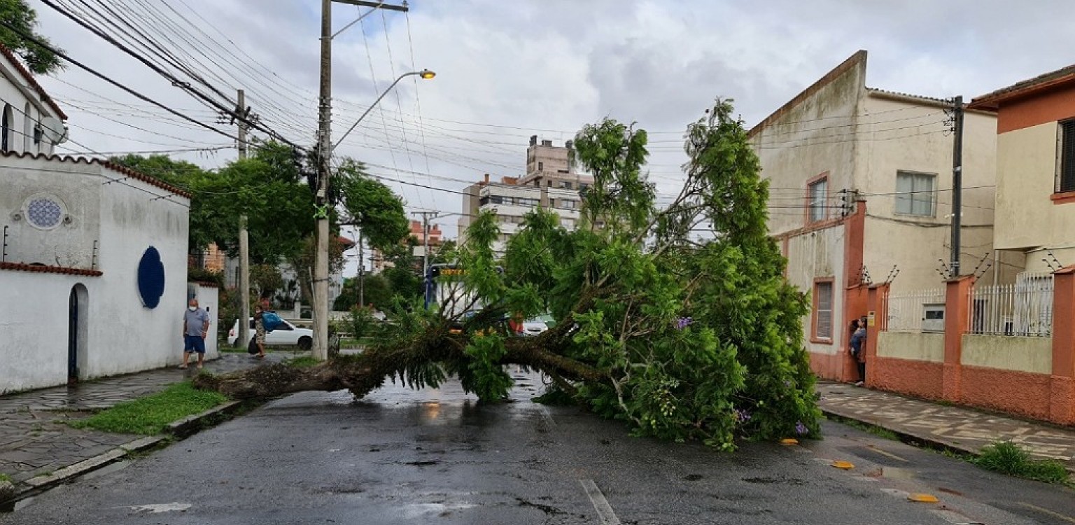 A queda do vegetal ocorreu em razão do vento forte que atinge o município desde a madrugada e que veio acompanhado de chuva. O Corpo de Bombeiros e a Defesa Civil foram acionados para a remoção da árvore e liberação do fluxo.