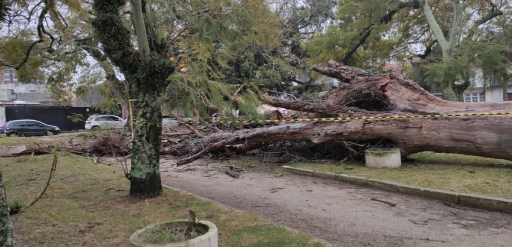 Um dos pontos mais críticos foi no bairro Jardim do Sol, onde dois vegetais de grande porte vieram ao chão e obstruíram também os acessos aos bairros Parque Marinha e Parque São Pedro. Foto: Divulgação/Redes sociais