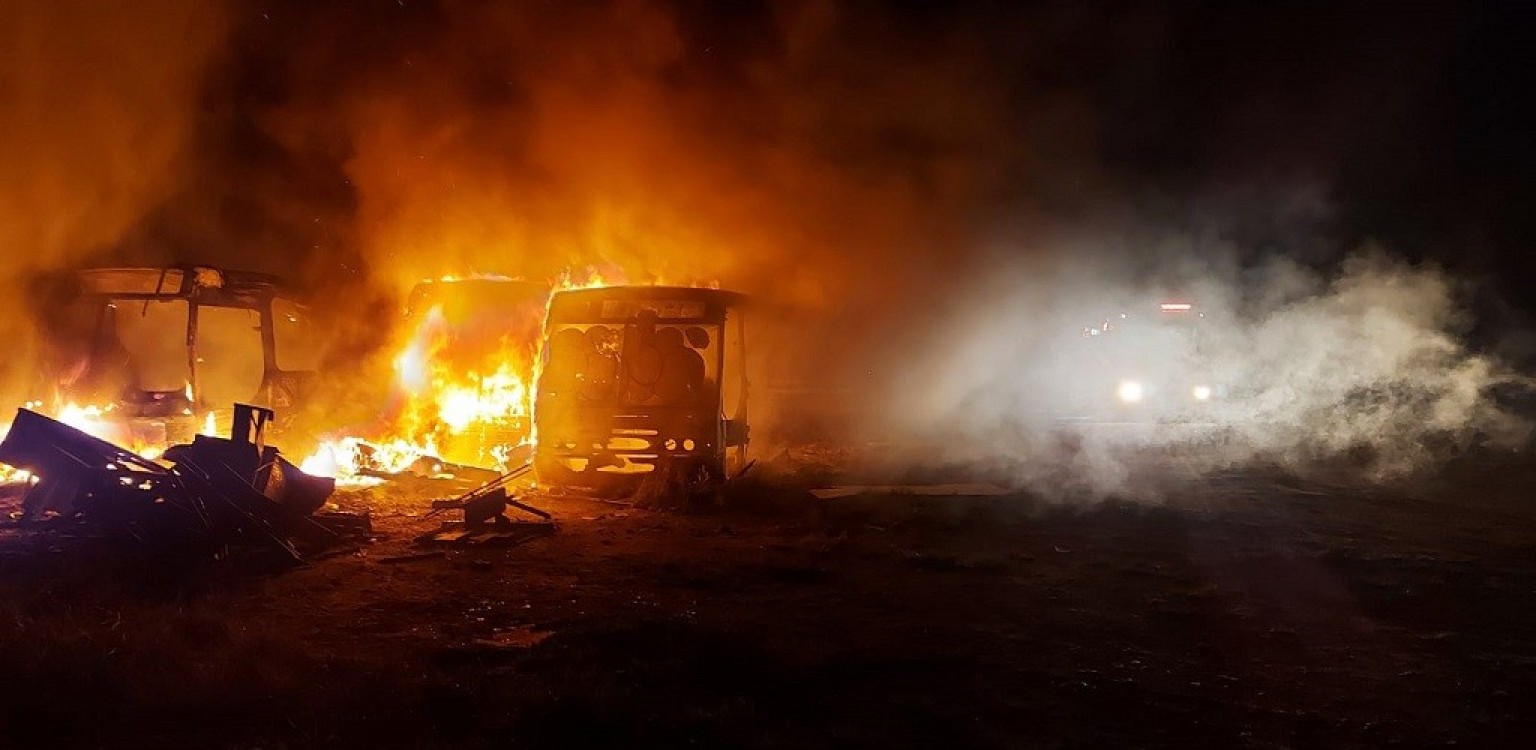 BOMBEIROS COMBATEM INCÊNDIO EM CARCAÇAS DE ÔNIBUS, NA BR 392