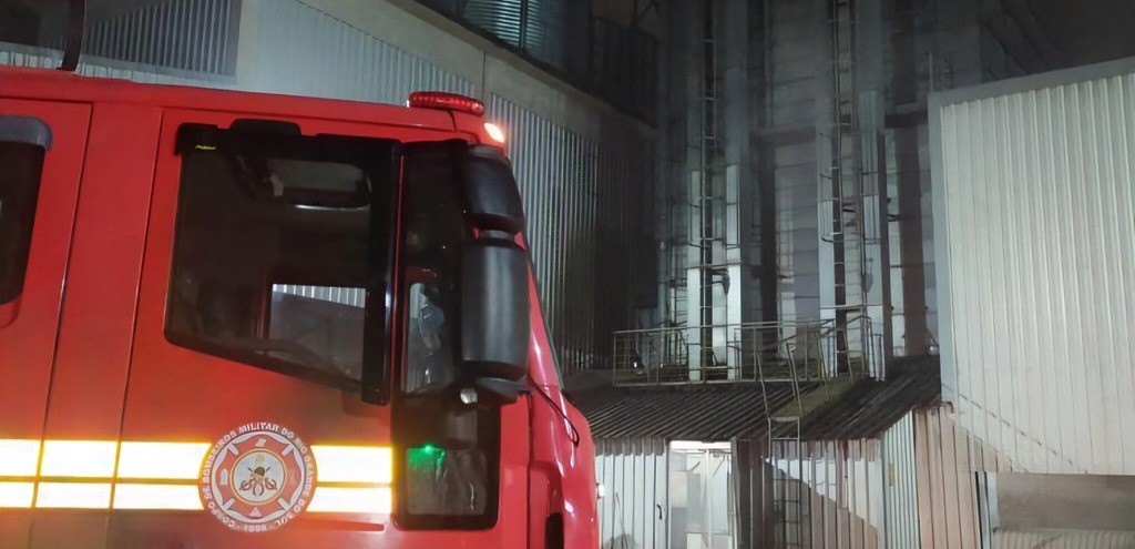 BOMBEIROS E BRIGADISTAS COMBATEM INCÊNDIO QUE ATINGIU PARTE DE ESTRUTURA DE INDÚSTRIA DE BENEFICIAMENTO DE FERTILIZANTES, EM RG