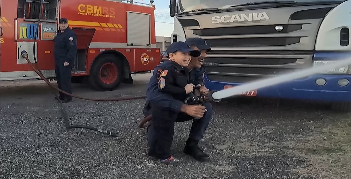 BOMBEIROS FAZEM SURPRESA PARA MENINO DURANTE FESTA DE ANIVERSÁRIO, EM JAGUARÃO