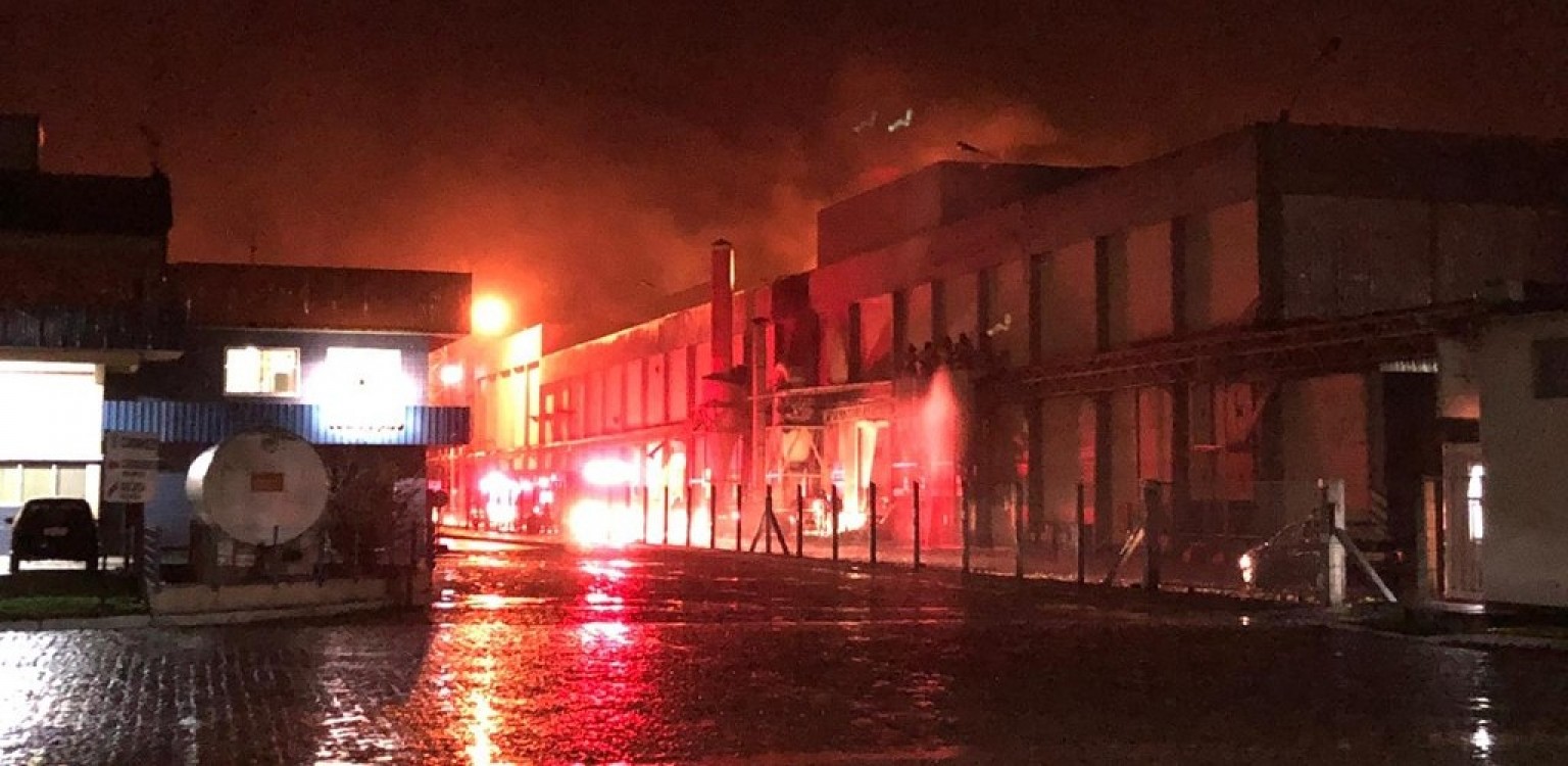 BOMBEIROS USAM CEM MIL LITROS DE ÁGUA PARA CONTER INCÊNDIO EM EMPRESA DE CAMAQUÃ