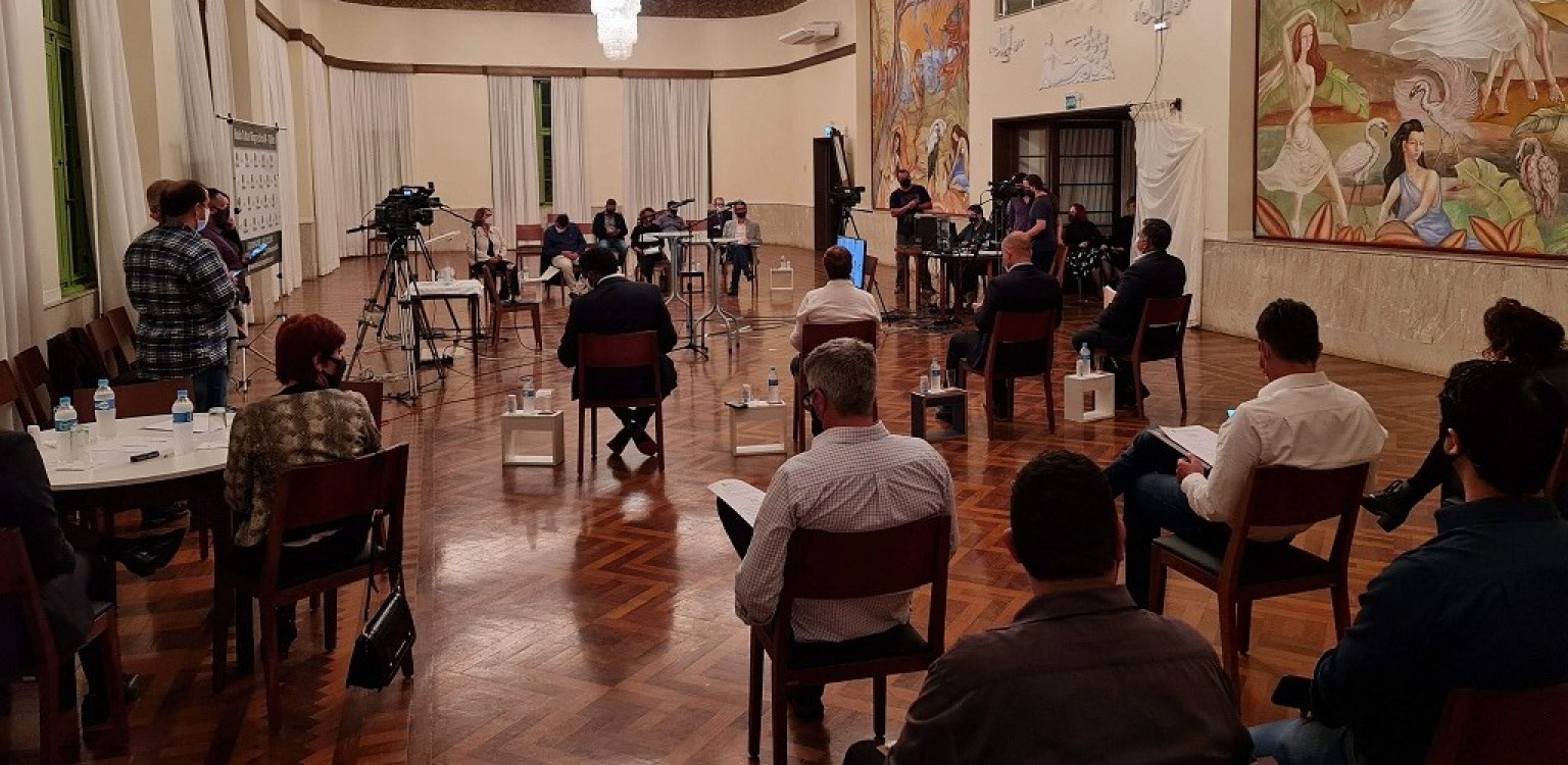 O último debate entre os candidatos à Prefeitura do Rio Grande foi realizado na noite desta quinta-feira, promovido pela rádio Cultura Riograndina, o site O Litorâneo e a Webrádio Zona Sul. O evento, mediado pelo jornalista André Zenobini, aconteceu no salão nobre da Câmara de Comércio e contou com a presença de profissionais da imprensa e de coordenadores de campanha.