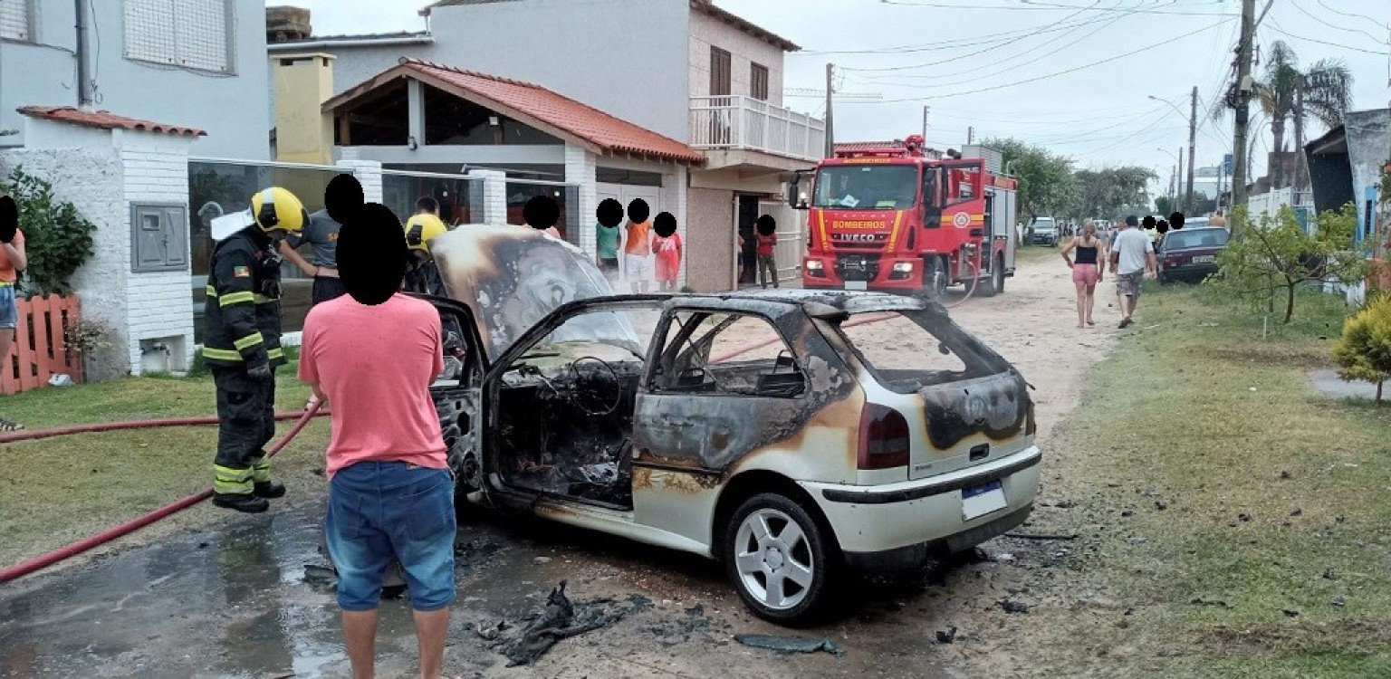 Um carro de passeio foi completamente destruído após ter sido atingido por um incêndio, na tarde deste domingo (2), na esquina das ruas Paulino Modernel e Bahia, no balneário Cassino. O chamado para a sala de operações do Corpo de Bombeiros foi registrado às 14h42 e ao chegar no local a equipe se deparou com o automóvel em chamas atravessado na via.
