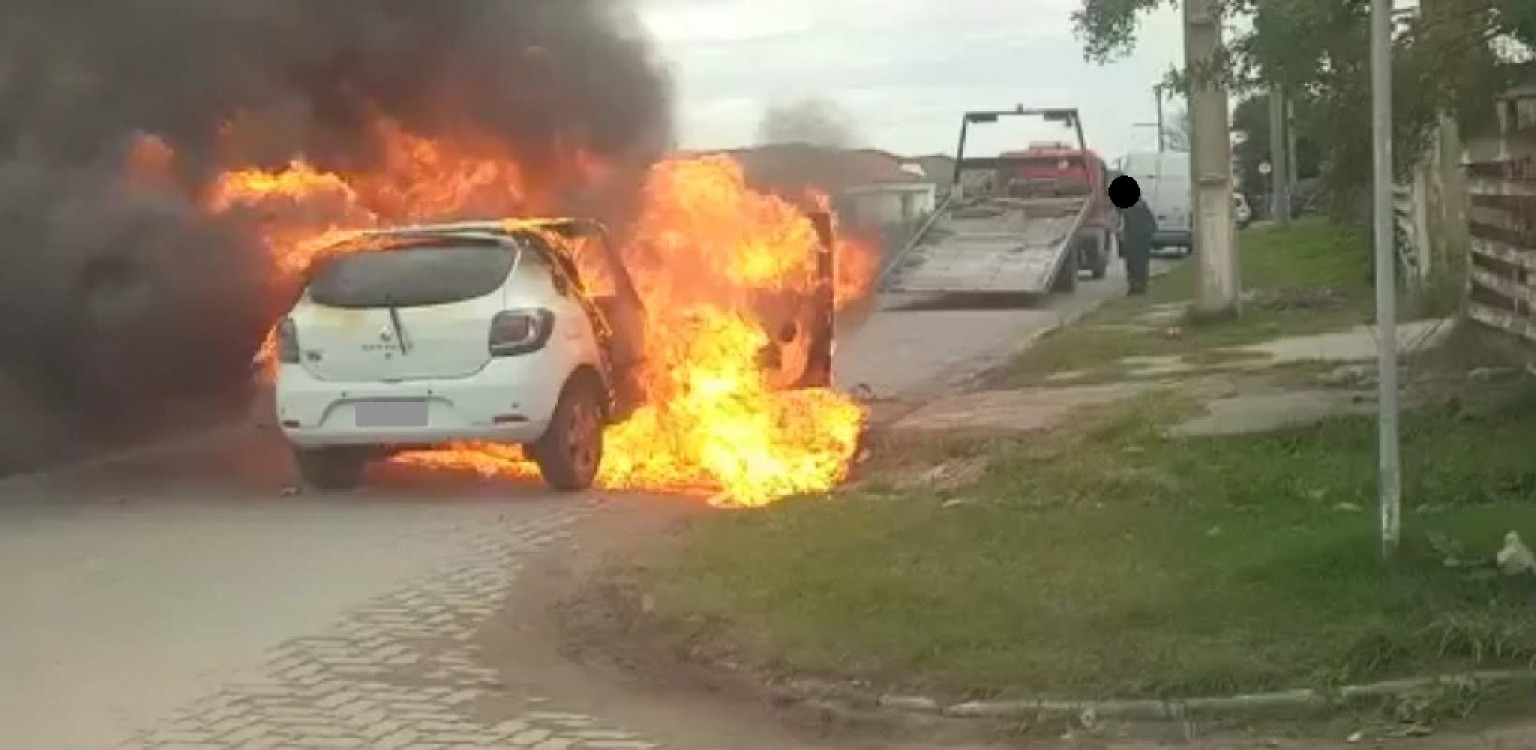 Um carro ficou completamente destruído, após ter sido atingido por um incêndio, na manhã desta segunda-feira (8), em Rio Grande. De acordo com as informações, o automóvel estava em cima de uma plataforma no momento em que as chamas tiveram início, obrigando o operador do guincho a agir rápido para evitar que o fogo também atingisse o caminhão.