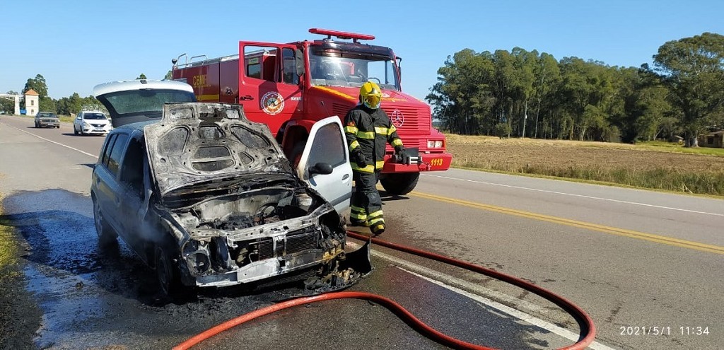 Já em Jaguarão, o chamado foi registrado às 01h06. No local, os militares encontraram o veículo completamente tomado pelo fogo e sem ninguém nas proximidades. O combate às chamas foi realizado com o uso de dois mil litros de água e 40 minutos de trabalho. Durante o rescaldo, os bombeiros constataram que o fogo destruiu totalmente o Volkswagen Gol.