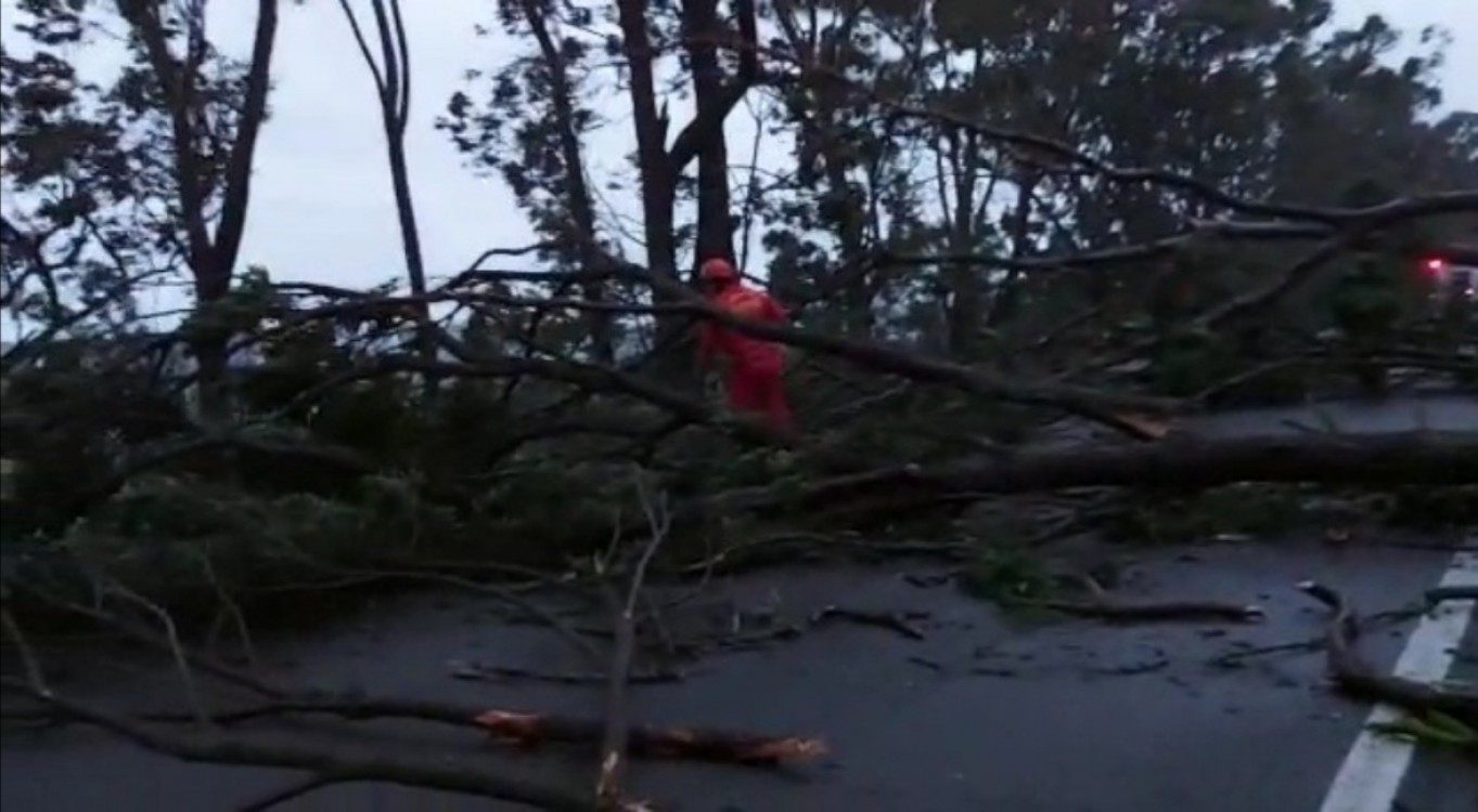 Em Rio Grande, um poste de iluminação instalado na rótula do Trevo acabou caindo com a força do vento e equipes do setor de iluminação pública foram encaminhadas ao local. Já na BR 471, o Corpo de Bombeiros atuou por mais de duas horas no corte de uma árvore que havia caído sobre a pista e interditado a rodovia nos dois sentidos.