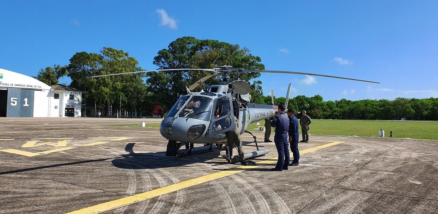 A Marinha do Brasil atuou no local com uma moto aquática, uma lancha e uma aeronave do 1º Esquadrão de Helicópteros de Emprego Geral do Sul (HU-51). Foto: Rodrigo de Aguiar/Papareia News