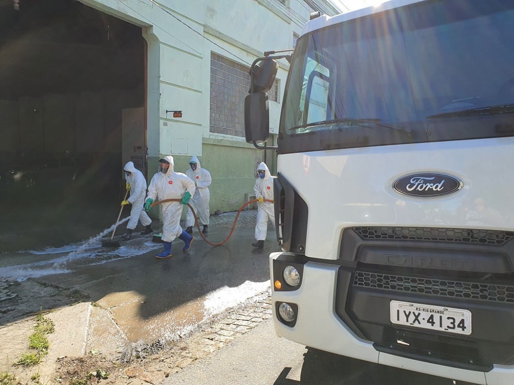 Diariamente, às 13h30 e às 19h, funcionários da Prefeitura Municipal realizam a lavagem de pontos de ônibus da Praça Tamandaré e do entorno dos hospitais da cidade, como uma das medidas de prevenção ao coronavírus. Para a realização desse serviço, são utilizados três caminhões, sendo um deles da Marinha do Brasil, que são carregados com água que é cedida pela Companhia Riograndense de Saneamento (Corsan).