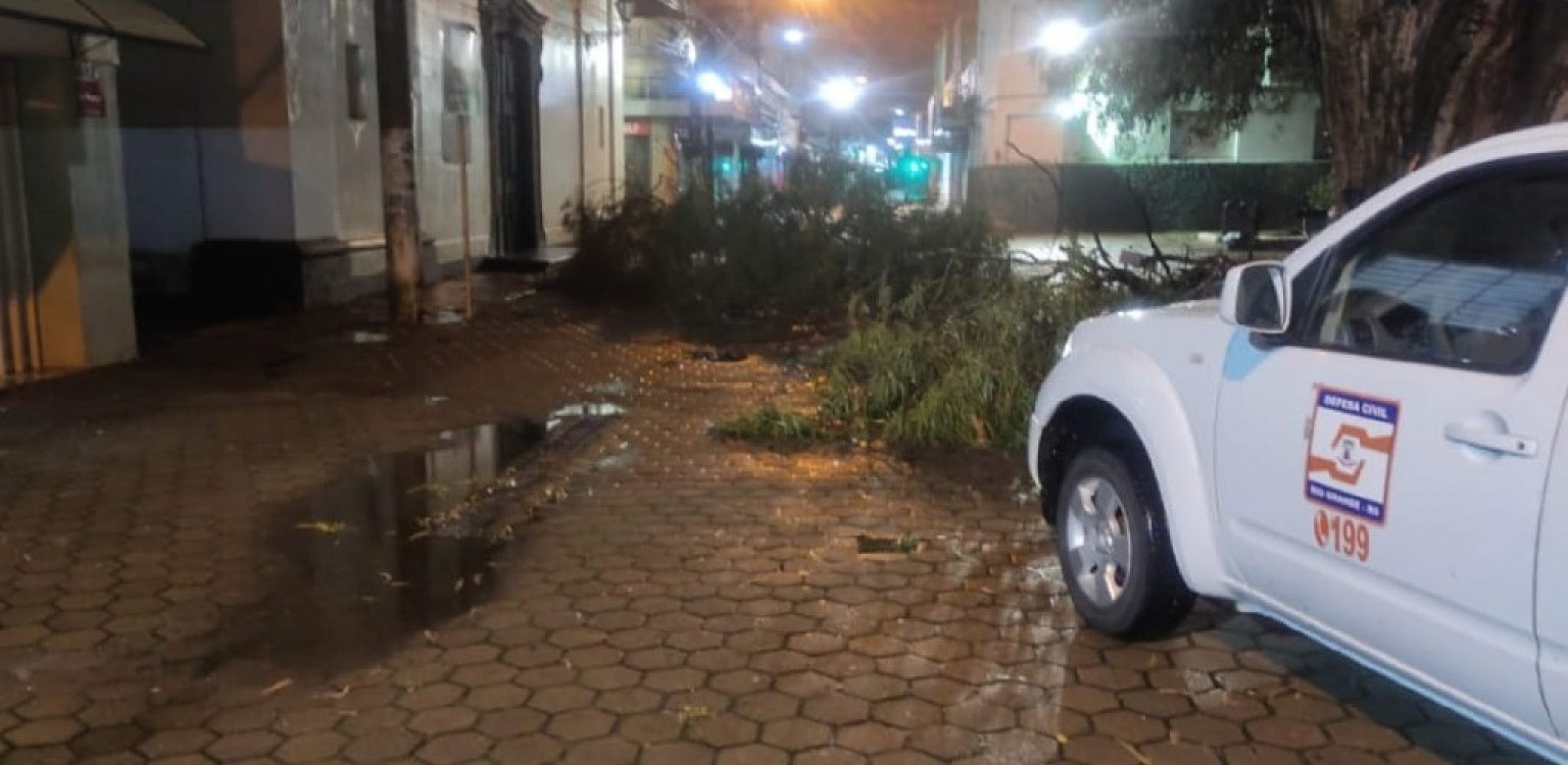 Ocorrências, como queda de galho no largo Dr. Pio, foram atendidas ao longo da madrugada pela Defesa Civil. Foto: Divulgação/Defesa Civil