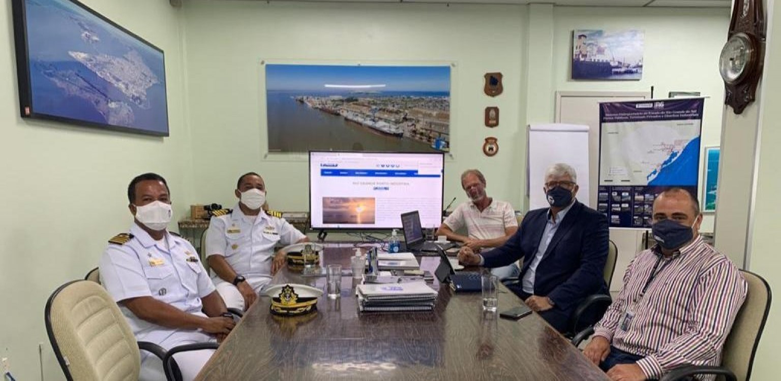 Um dos pontos positivos do ano de 2020 levantados por Estima foi a homologação do calado do Porto do Rio Grande. Também acompanharam a visita o diretor de infraestrutura e Operações da Portos RS, Jeferson Dutra, e o diretor de qualidade, meio ambiente, segurança e saúde, Henrique Ilha.