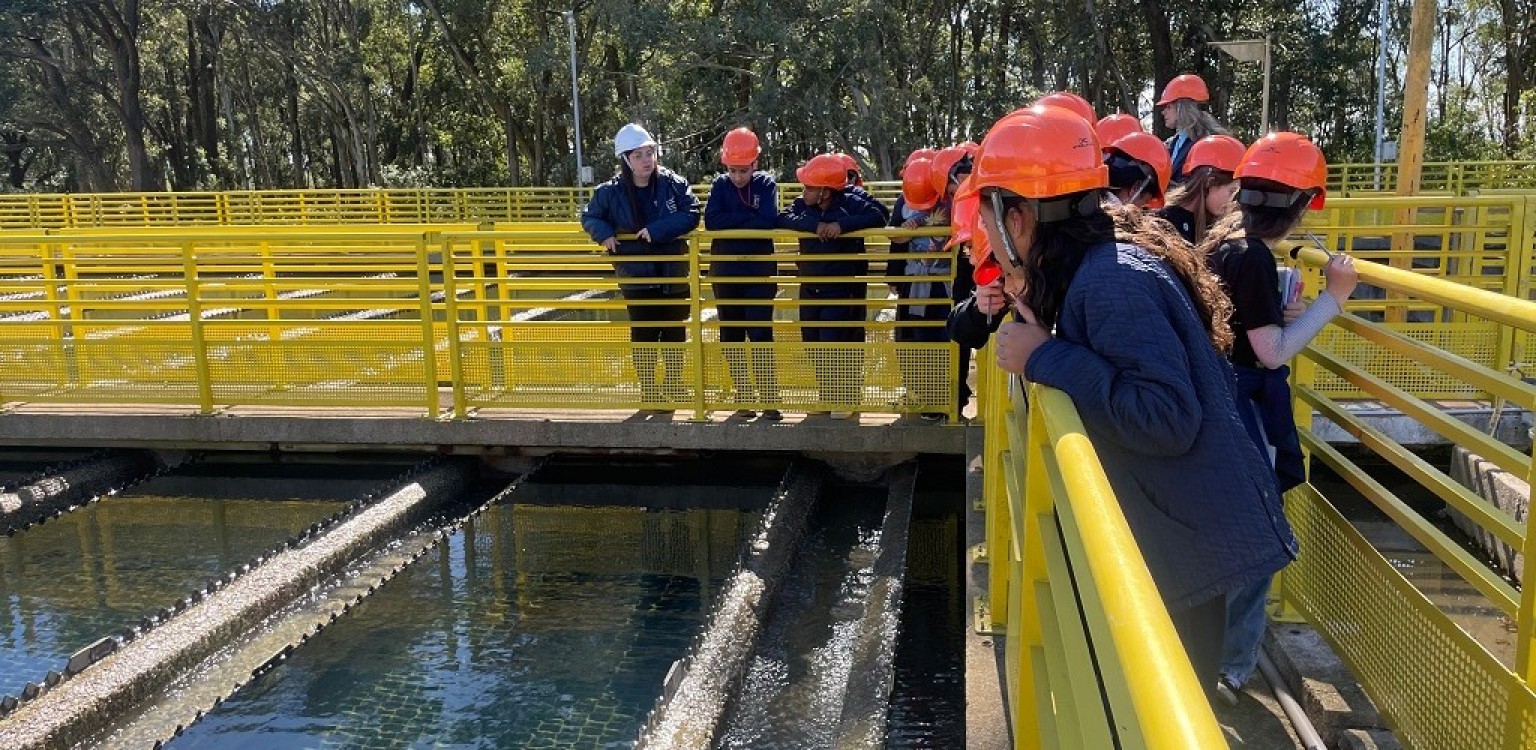 Durante a visita, os estudantes visualizaram as etapas do caminho da água, desde a captação no canal São Gonçalo e Arroio Vieira, até chegar às torneiras dos consumidores, depois de passar por tratamento. Foto: Divulgação/Corsan