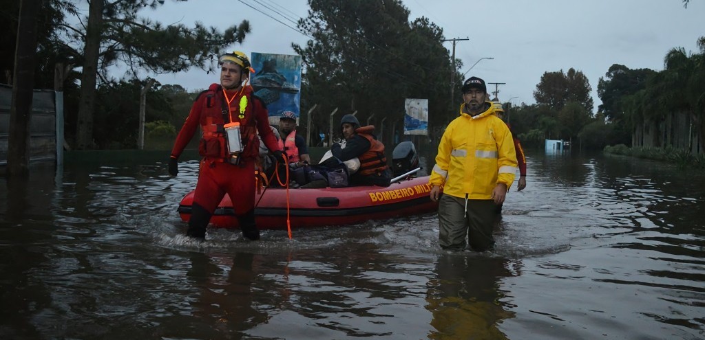 A bordo de um helicóptero Seahawk da Marinha do Brasil, o prefeito municipal, Fábio Branco, sobrevoou a região das ilhas de Rio Grande, na tarde desta segunda-feira (13). Ele esteve acompanhado do vice-prefeito e coordenador da Defesa Civil, Sérgio Webber, do ordenador de despesas do órgão, Anderson Montiel, e do diretor das promotorias de justiça do Rio Grande, Marcelo Thormann.