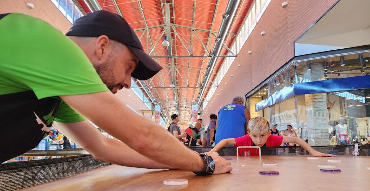Marcelo e o filho Arthur, de sete anos, disputaram uma partida em uma das mesas de tamanho oficial disponibilizadas. Fotos: Rodrigo de Aguiar/Papareia News