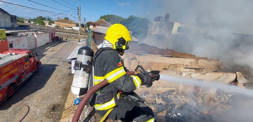 Um galpão, de aproximadamente 16 metros quadrados, foi parcialmente destruído em um incêndio, na noite desta terça-feira, no bairro Bolaxa. O espaço ficava localizado nos fundos de uma propriedade e era utilizado para o armazenamento de utensílios.
