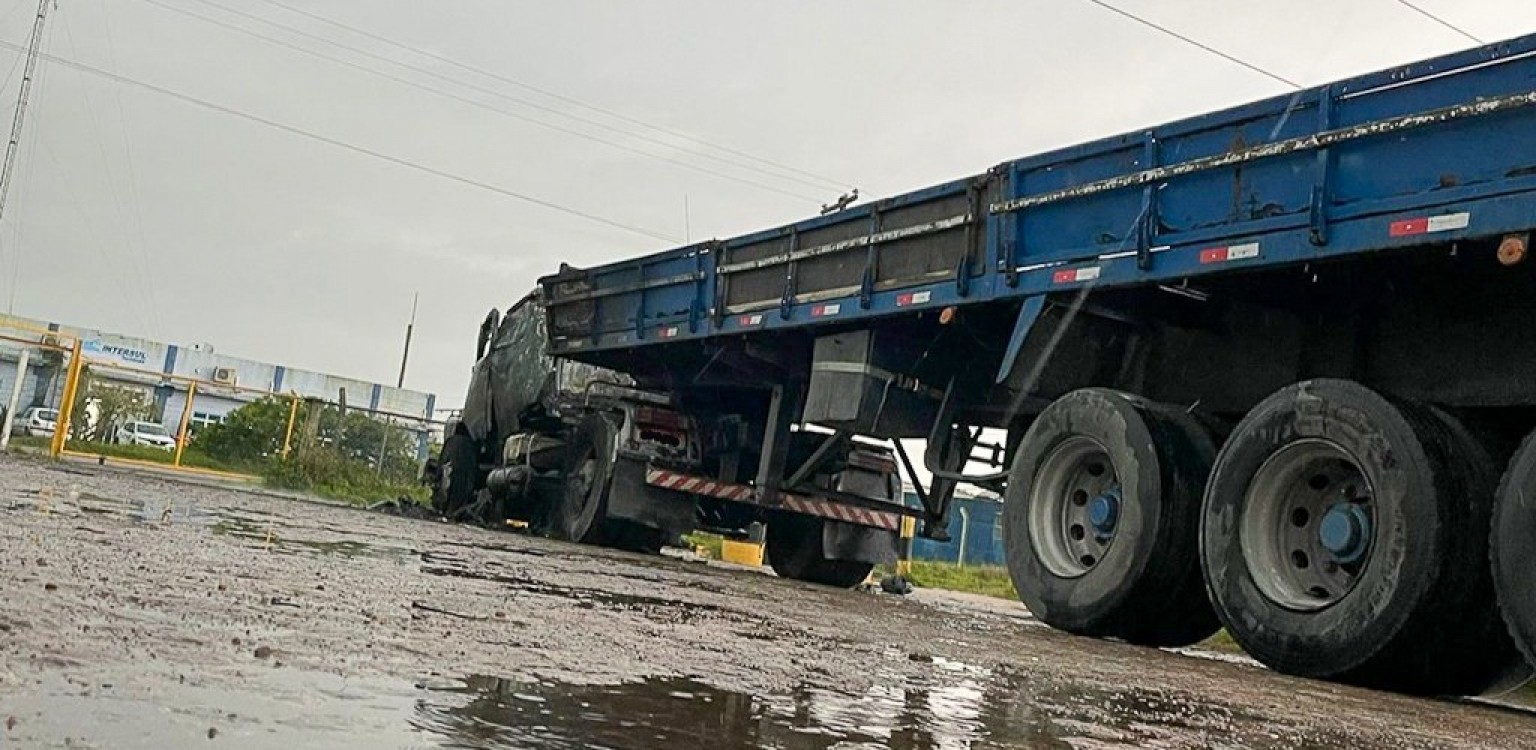 Um caminhão ficou completamente destruído em um incêndio, na manhã desta quinta-feira (7), em Rio Grande. O cavalo mecânico estava estacionado na Via 1 e o chamado para a sala de operações do Corpo de Bombeiros foi registrado às 07h55.
