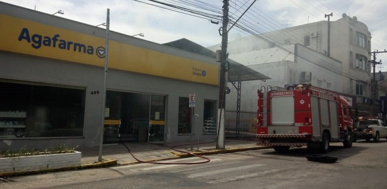 Pelo menos uma guarnição do Corpo de Bombeiros e outra da Brigada Militar atendem a ocorrência que registra uma grande presença de populares que acompanham o trabalho dos militares. O estabelecimento, da rede Agafarma, fica localizado na esquina das ruas Olavo Moraes e Presidente Vargas.