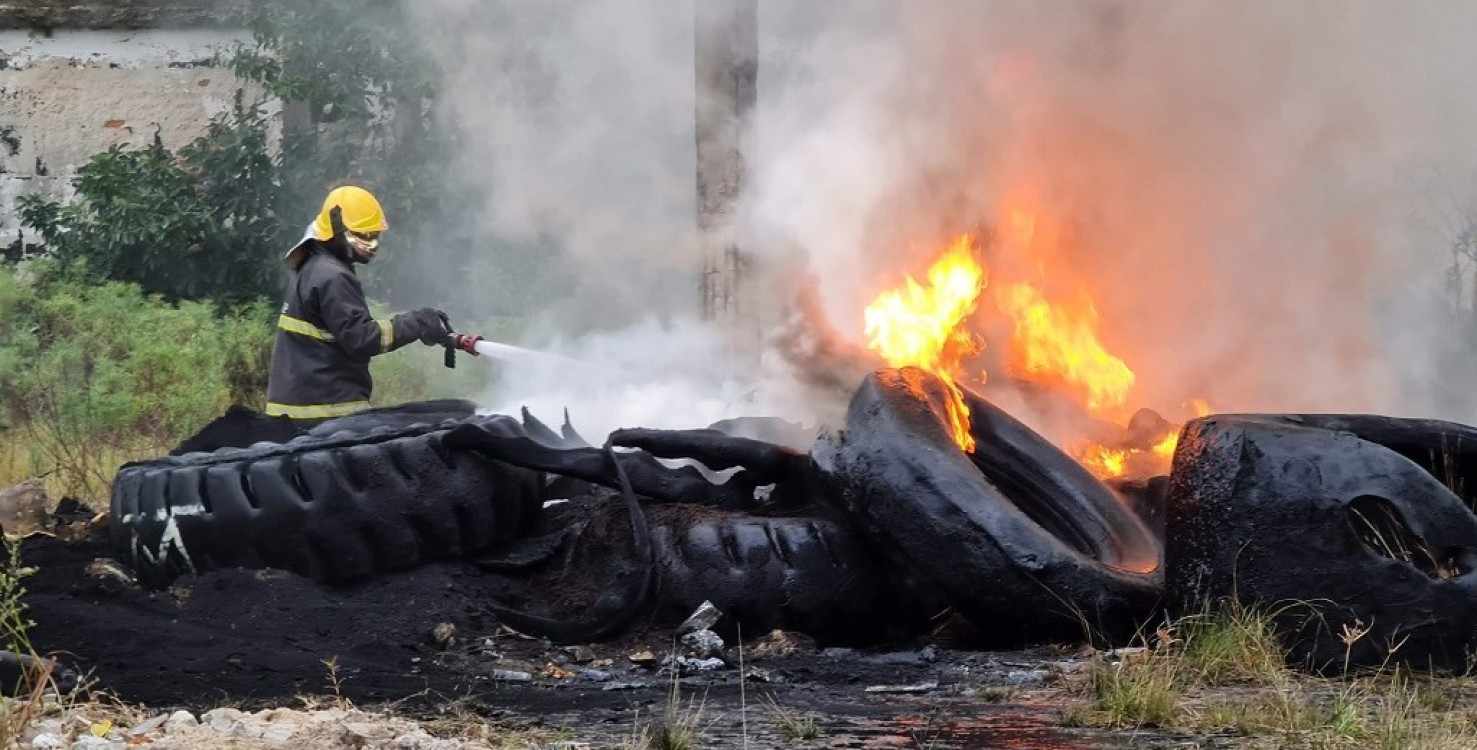 INCÊNDIO ATINGE PNEUS ABANDONADOS AO LADO DA ANTIGA FÁBRICA DA PESCAL