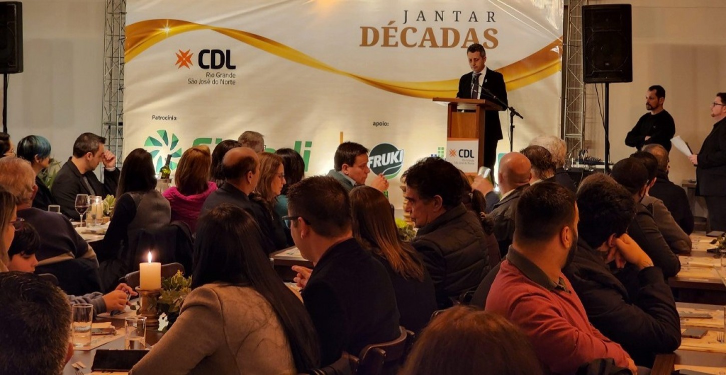 A Câmara de Dirigentes Lojistas (CDL) de Rio Grande e São José do Norte realizou, na noite desta quinta-feira (28), o Jantar Décadas em alusão ao Dia do Comerciante, comemorado no dia 16 de julho. Na oportunidade, foram homenageados comerciantes com décadas de atuação no município.