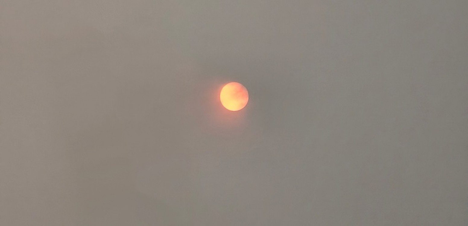 A fuligem em suspensão tende a alterar a coloração do céu deixando-o mais acinzentado e dando ao sol tons de laranja e vermelho. Foto: Rodrigo de Aguiar/Papareia News