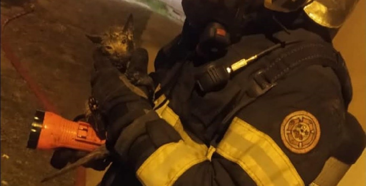 O animal foi localizado em meio ao fogo e resgatado pelos bombeiros sem ferimentos. Foto: Divulgação/3º BBM