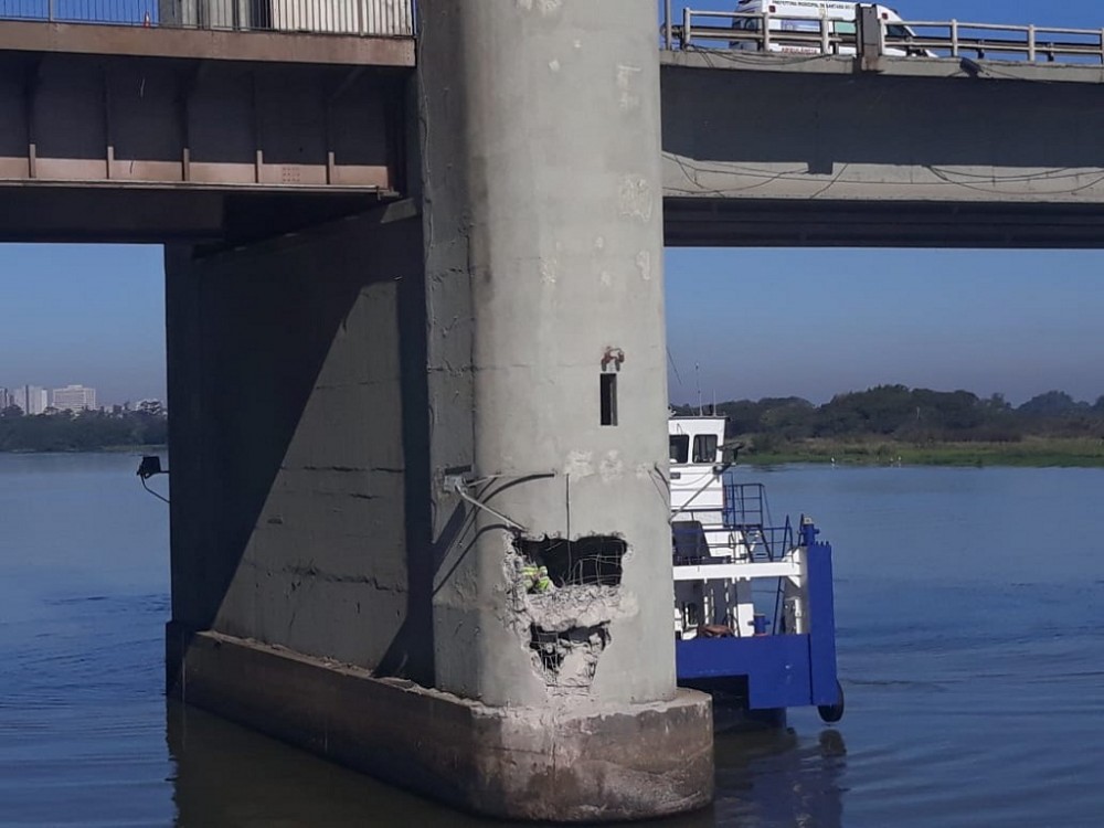 NAVIO COLIDE EM UM DOS PILARES DA PONTE DO GUAÍBA E CAUSA DANOS NA ESTRUTURA