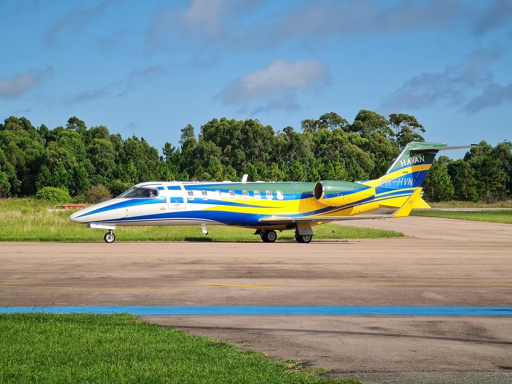 O Learjet 45 da empresa pousou no aeroporto Gustavo Kramer pouco depois das 08h30 e de lá os representantes foram em direção a obra, distante cerca de dois quilômetros da pista. A equipe multiprofissional fez uma análise minuciosa dos detalhes e se certificou de que a construção segue de maneira satisfatória e dentro do cronograma.