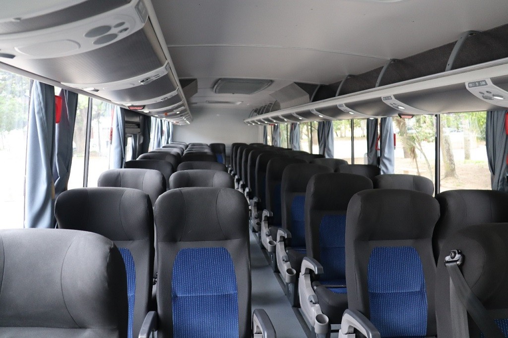 O veículo é o primeiro com wifi integrado, tecnologia que chega para agregar ao modelo de transporte diferenciado, que já conta com ar condicionado, lotação controlada, bancos reclináveis e passagem no valor de R$ 7,80. O padrão de pintura segue a mesma proposta dos urbanos entregues recentemente, porém com a cor azul no lugar do verde limão.