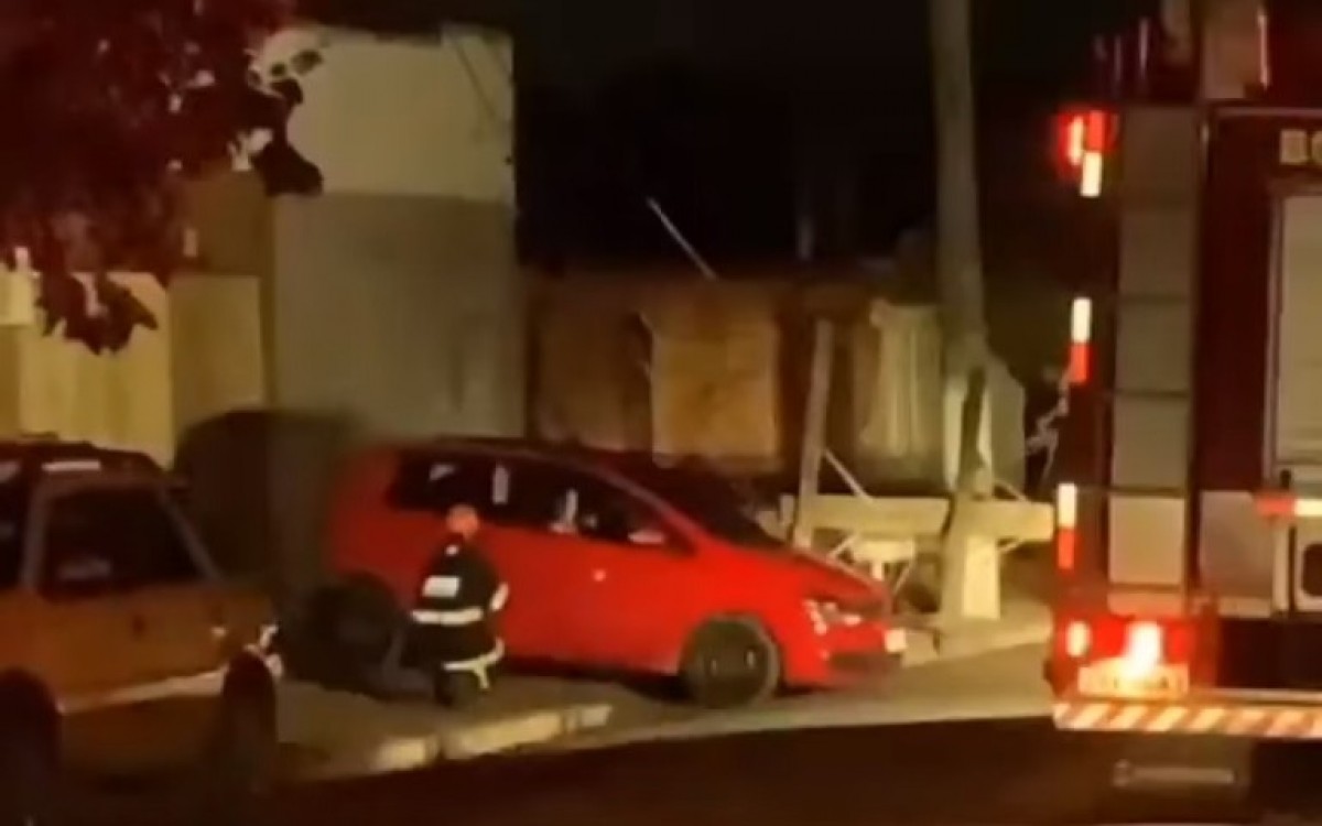 O Corpo de Bombeiros foi acionado e ao chegar no local, encontrou os ocupantes dentro do automóvel, impossibilitados de sair por estar com o entorno energizado. Foto: Divulgação/Frame de vídeo