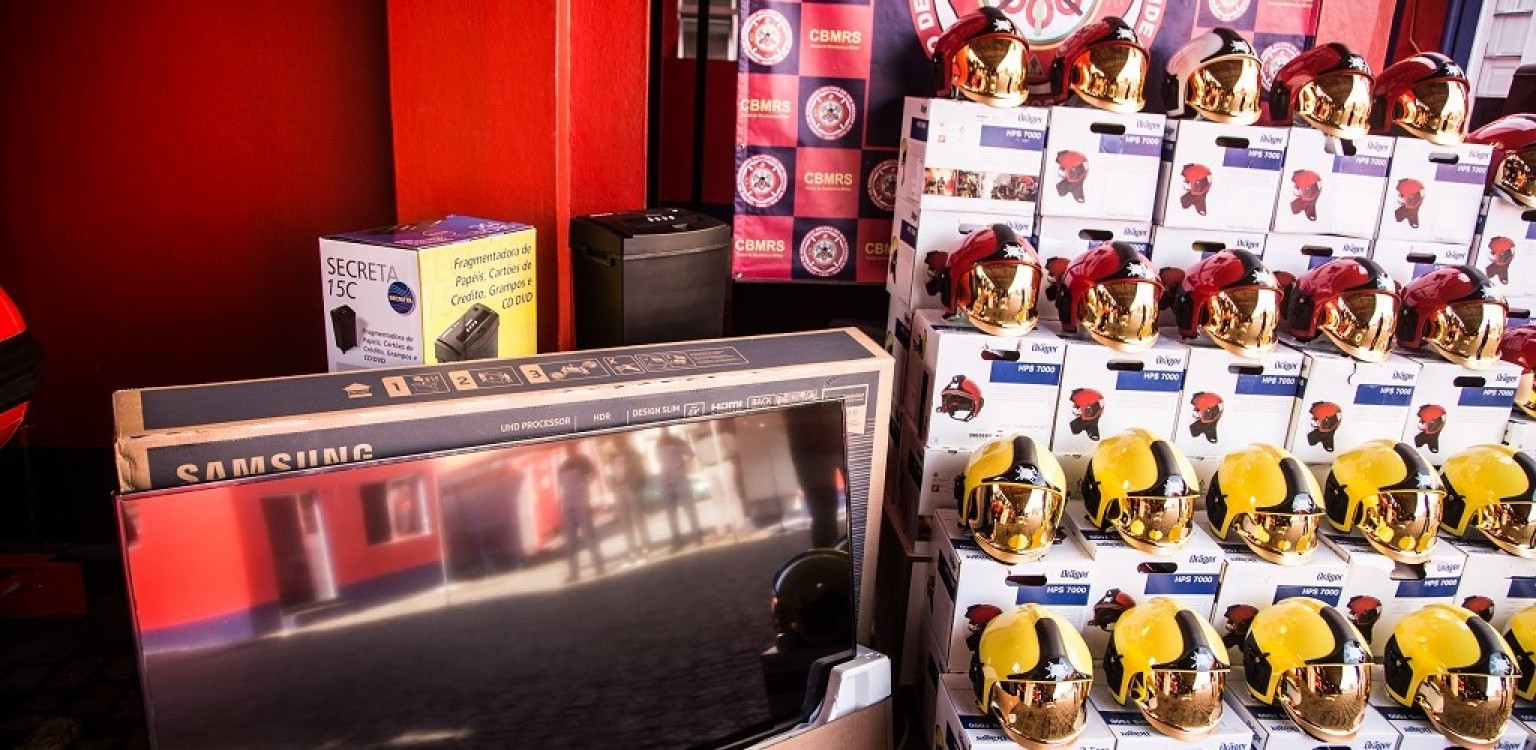 Foram adquiridos um barco para operações de resgate aquático, 60 capacetes de combate a incêndio, três micro-ondas, um aparelho de televisão para a sala de instrução, uma desfragmentadora de papel e cinco impressoras portáteis a serem usadas em serviços do Sistema Online de Licenciamento (SOL). Foto: Gustavo Vara/PMPel