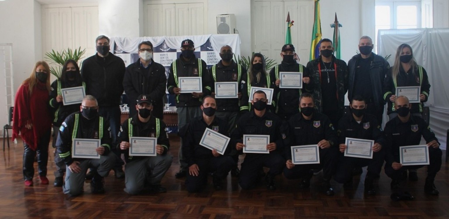 A Prefeitura do Rio Grande realizou a cerimônia de formatura de 13 novos agentes de trânsito na manhã desta quinta-feira (26). Cinco dos formandos já atuavam como guardas municipais e, com a conclusão da capacitação, também poderão trabalhar como agentes de trânsito, o que é autorizado pela atual legislação federal, assim como pela municipal.