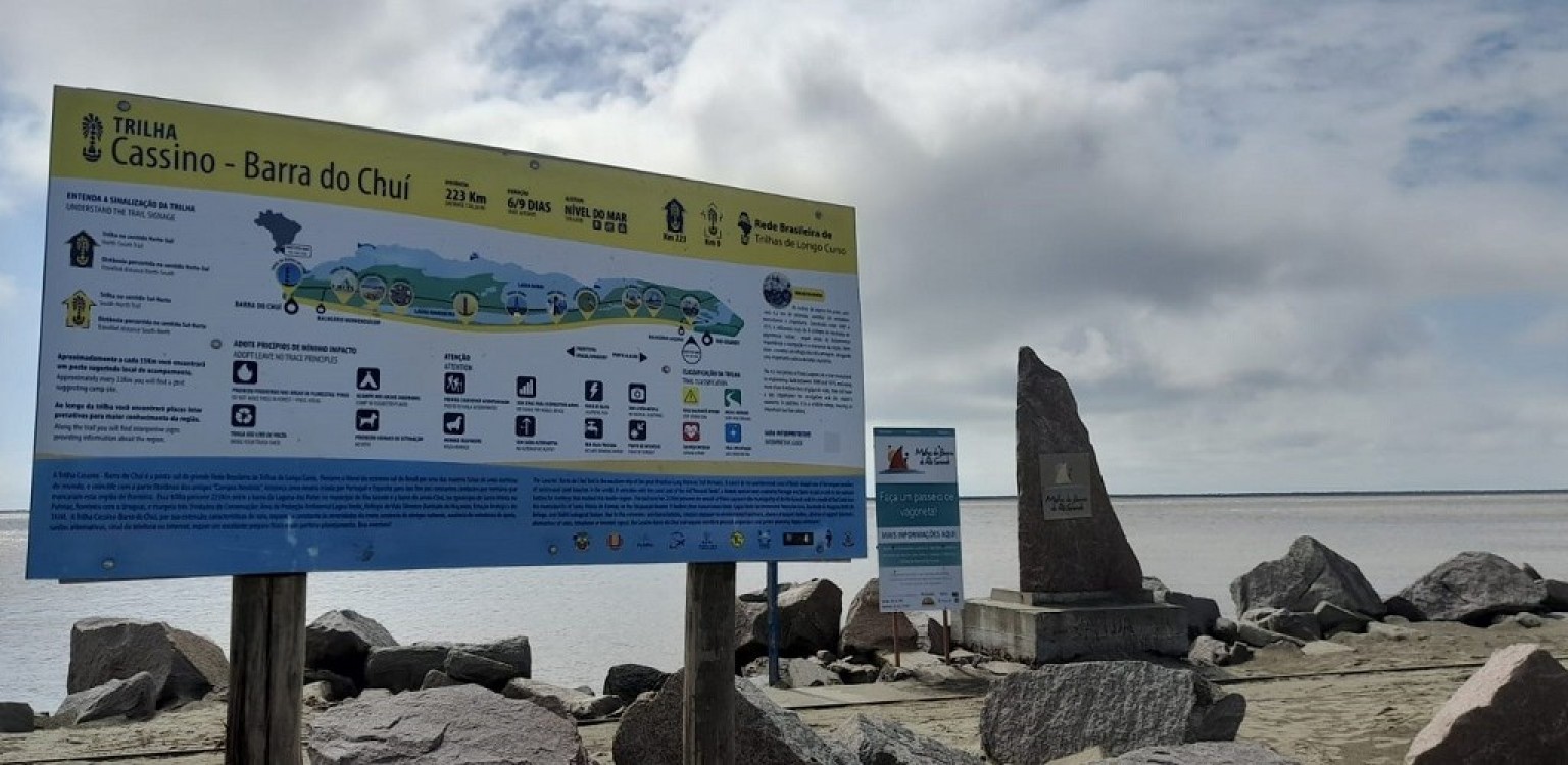 A primeira placa de cabeceira que marca o reconhecimento da inserção de Rio Grande na Rota Brasileira de Trilhas, percurso Cassino-Barra do Chuí, foi instalada nessa terça-feira (27) nos Molhes da Barra, e simultaneamente, na Barra do Chuí. A ação comemora o Dia Mundial do Turismo em Rio Grande, tornando a trilha um ponto de atração para turistas e trilheiros nacionais e internacionais.