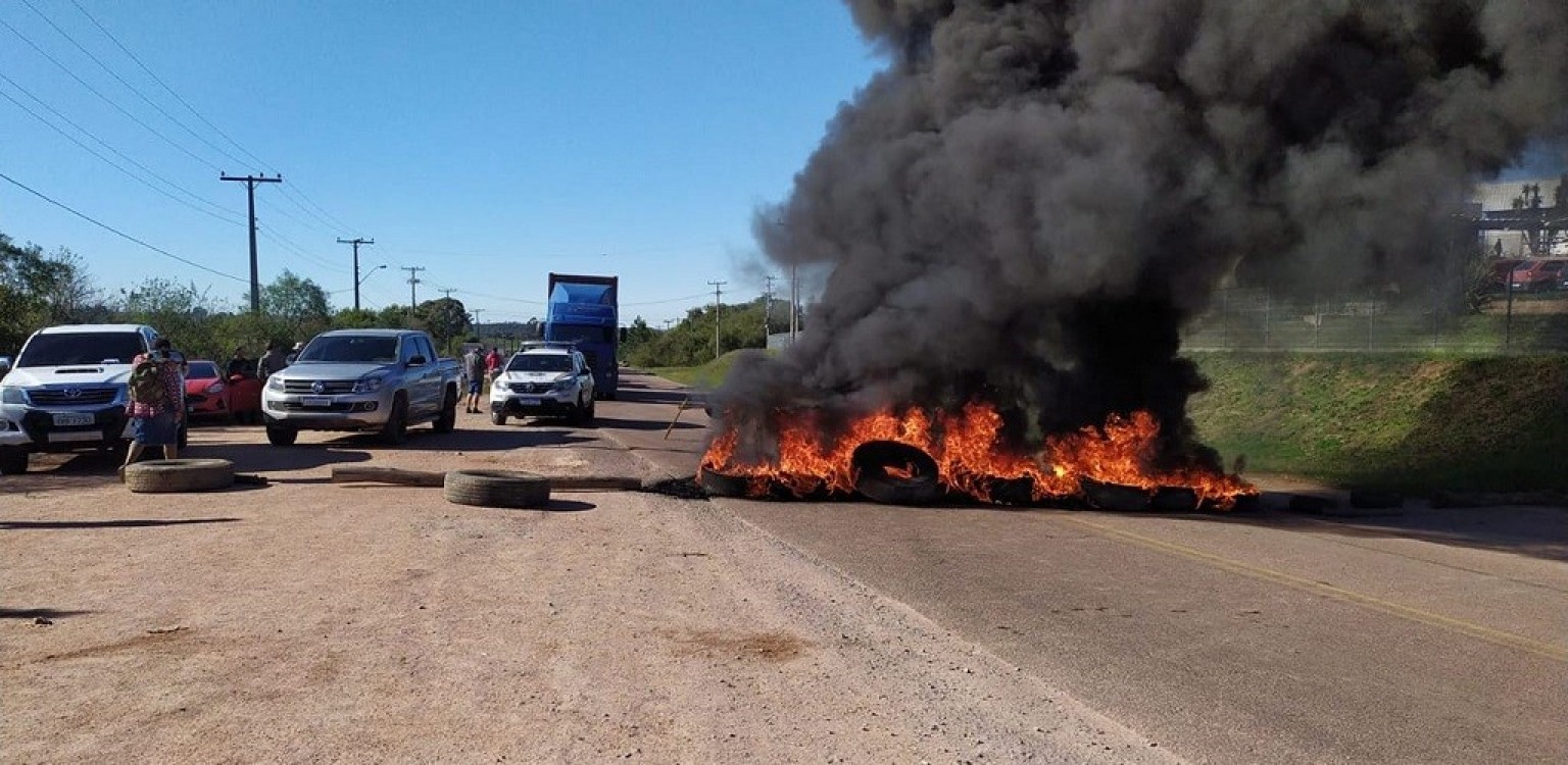 Os manifestantes prometem liberar totalmente a pista depois que uma comissão seja recebida pelo Departamento Autônomo de Estradas e Rodagem (Daer) para informar a situação da rodovia. Foto: Divulgação/Jornal 19 de Julho