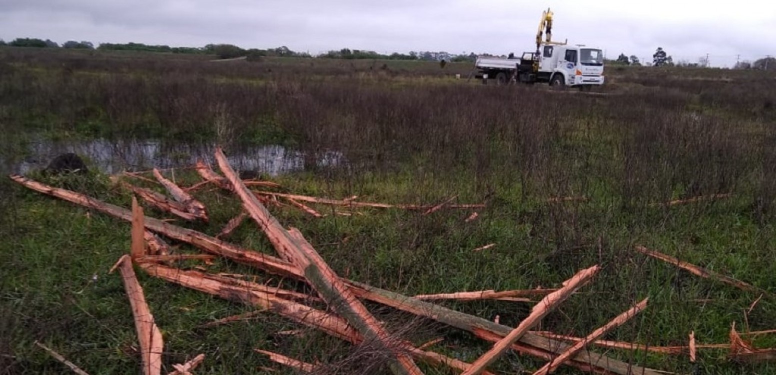 Na mesma madrugada, um dos postes de alta tensão da Estação de Tratamento de Esgoto (ETE) Navegantes, localizada ao lado do Parque Marinha, na BR 392, foi atingido por um raio e com isso o serviço de tratamento foi prejudicado. A substituição do poste foi feita pela própria Corsan, em razão do incidente ter acontecido na área interna da estação. A descarga elétrica foi tão forte que destruiu completamente a estrutura de madeira.