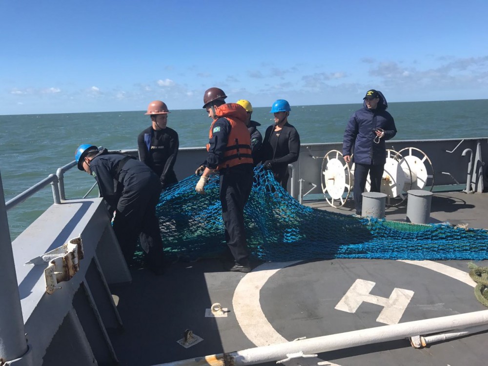 Rede foi localizada pela embarcação Monte Carlo II e entregue aos militares do navio-patrulha Benevente (Foto: Divulgação Marinha do Brasil)