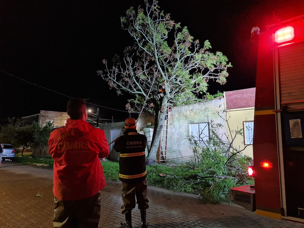 O Corpo de Bombeiros aumentou o efetivo de serviço e no início da noite de hoje uma guarnição realizava o corte de uma árvore que caiu em cima de uma residência, localizada na Rua Visconde de Mauá. Os moradores acreditam que ela tenha caído ainda durante a madrugada, quando os ventos atingiram velocidade significativa.