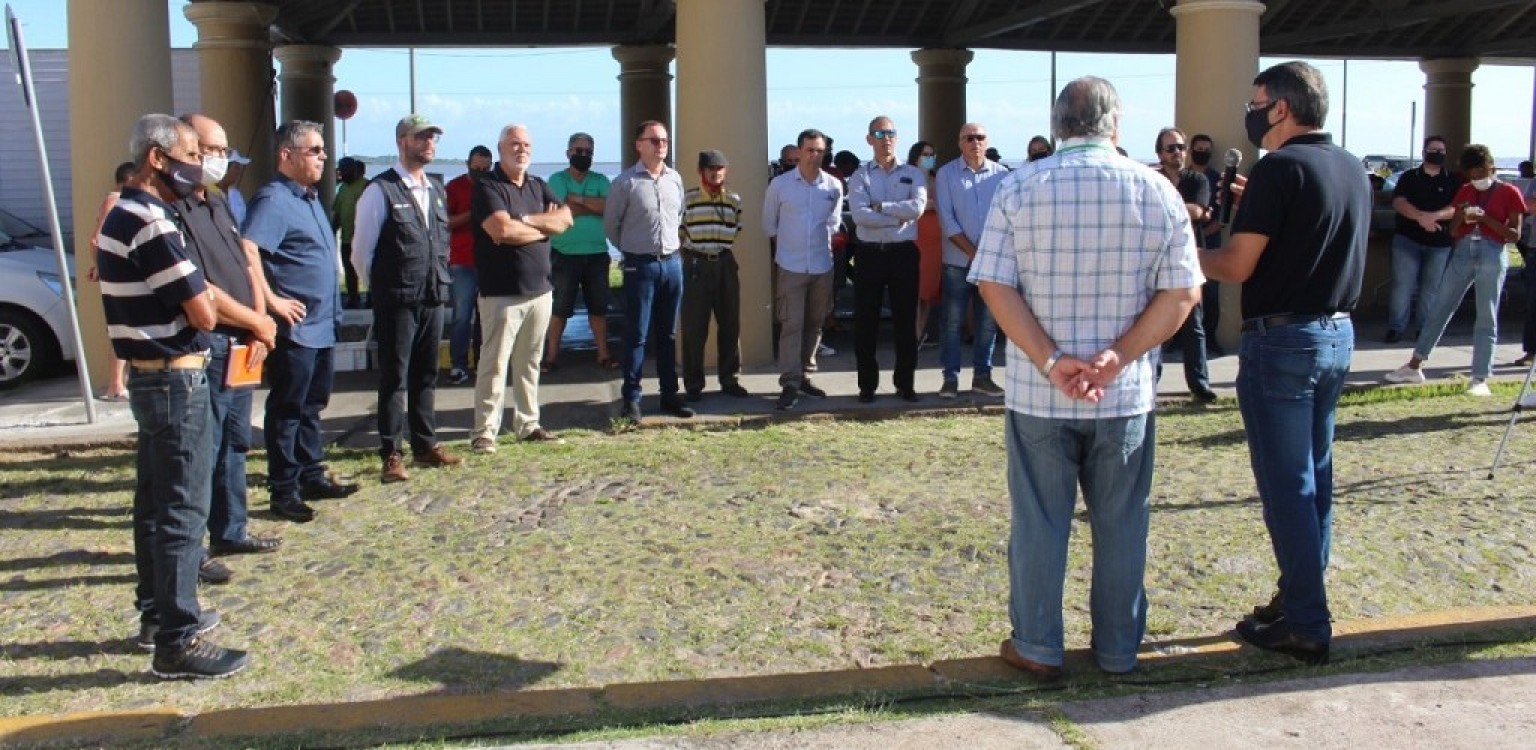 Foi em frente às docas do Mercado Público e diante de caixas abarrotadas de camarão capturado durante a madrugada que o prefeito de Rio Grande, Fábio Branco, e o secretário nacional da Pesca, Jorge Seif, abriram oficialmente a safra do camarão no estuário da Lagoa dos Patos. O ato, realizado na manhã desta terça-feira (1), contou com a participação de lideranças do setor pesqueiro, pescadores e comerciantes.