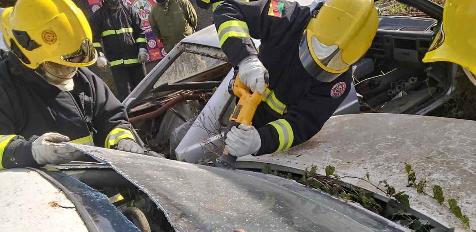 No período da manhã foram ministradas técnicas de resgate veicular, com o uso do desencarcerador e demais equipamentos. Fotos: Divulgação/3º BBM