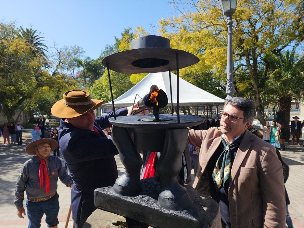 A edição 2022 da Semana Farroupilha de Rio Grande foi oficialmente aberta na manhã deste domingo (11). Reunidos na Praça Tamandaré, junto ao monumento-túmulo do general Bento Gonçalves, tradicionalistas, autoridades civis e militares e integrantes da sociedade civil prestigiaram o acendimento da Chama Crioula.