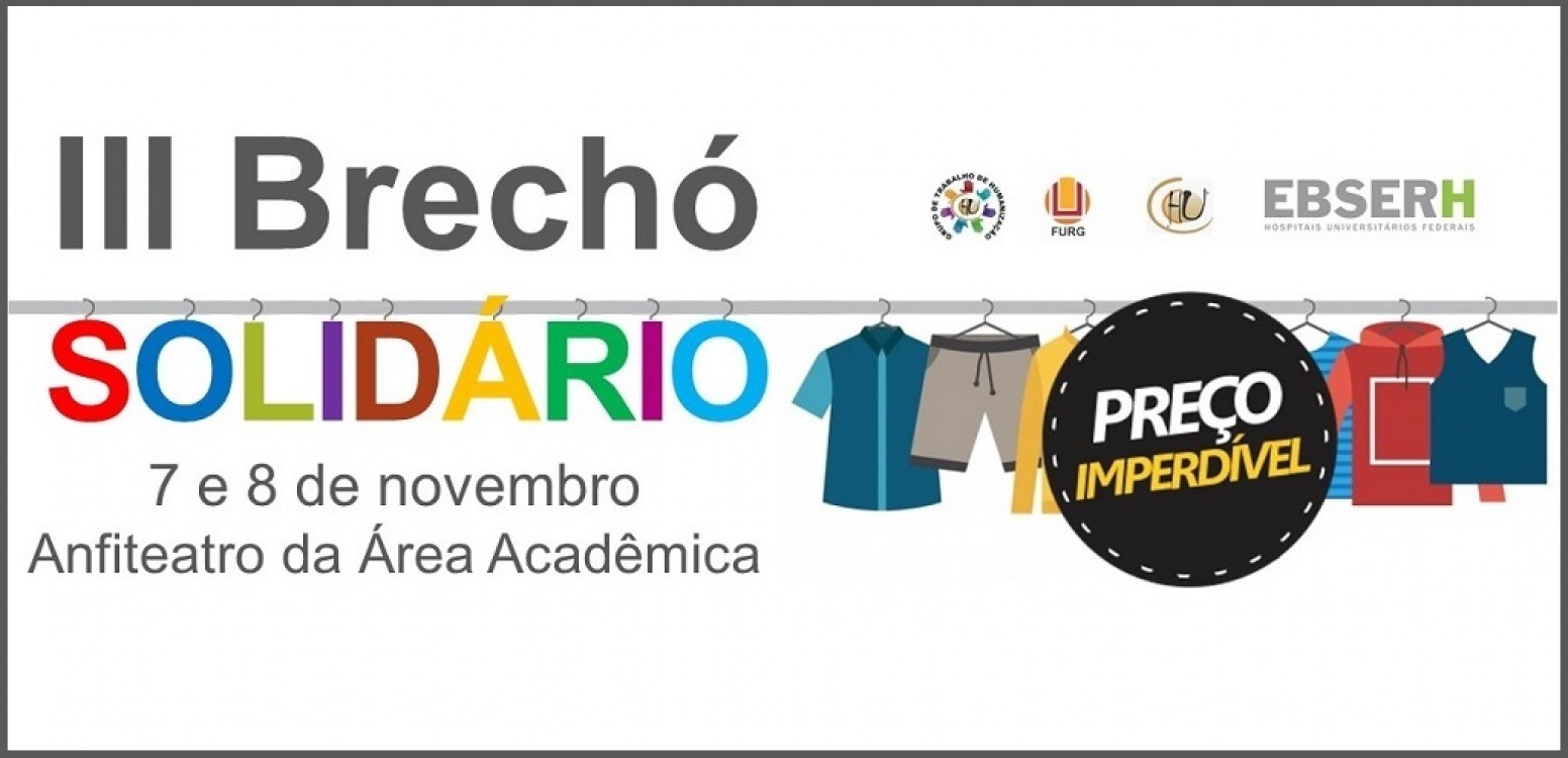 O Brechó acontecerá nos dias 07 e 08 de novembro, no Anfiteatro Prof. Vicente Mariano Pias, na Área Acadêmica, Prof. Newton Azevedo, das 9h às 18h. A renda será revertida para ações que contribuem para a melhor qualidade do cuidado aos trabalhadores e usuários do HU-FURG, único hospital 100% SUS de Rio Grande.